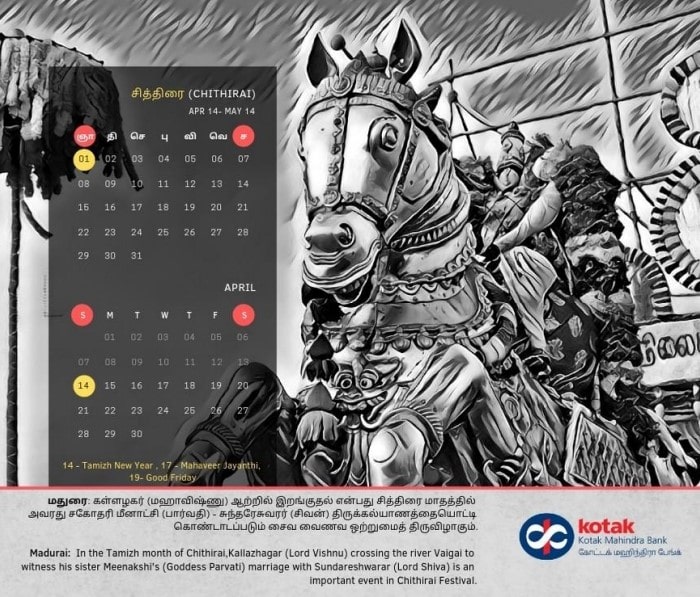 An aesthetic calendar which starts from April 14th and ends with April 13th showcasing the rich culture of Tamilnadu.